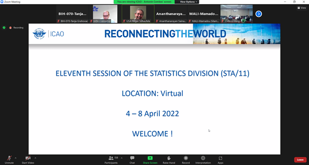 The eleventh session of the Statistics Division (STA/11) of the International Civil Aviation Organization (ICAO) was held via video conference from 4 to 8 April 2022. The session was attended by 160 participants from ICAO member states, as well as from other international organisations, and the participants were greeted by ICAO Secretary General Juan Carlos Salazar Gómez at the beginning of the session. On behalf of the Bosnia and Herzegovina Directorate of Civil Aviation, the meeting was attended by our Aviation Statistics Coordinator.
