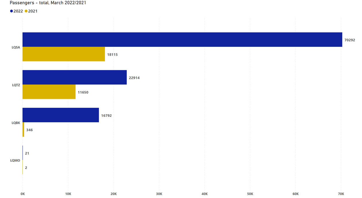 Traffic data for BH airports for March 2022
